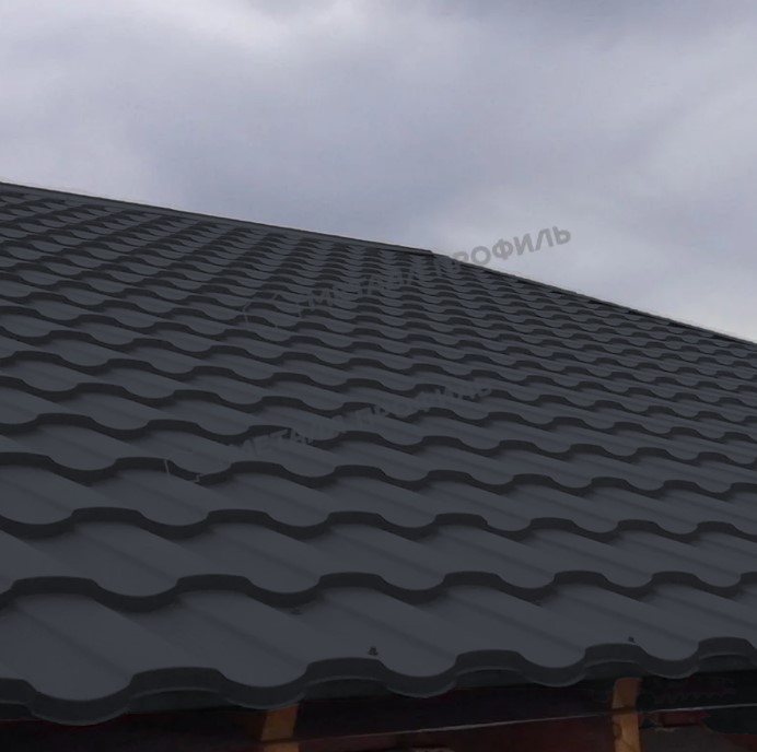 Металлочерепица в цвете серый графит представляет собой надежный и эстетичный материал для кровли. С толщиной 0,5 мм и специальным покрытием, она сочетает долговечность с современным дизайном, подходящим для различных архитектурных стилей.