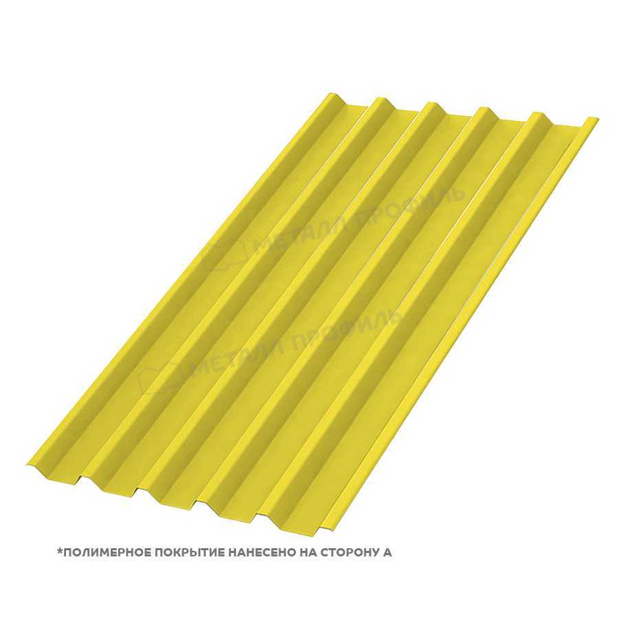 Профлист С-44 с толщиной 0,45 мм и полиэстеровым покрытием в цвете RAL 1018 представляет собой надежный материал для кровли и ограждений. Он сочетает прочность металла с эстетичным желтым оттенком, имитирующим цинк, и обеспечивает долговечность в различных условиях эксплуатации.